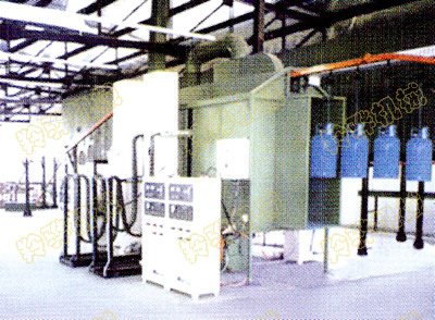 自動靜電噴涂生產(chǎn)線(采用電、燃?xì)狻⑷加凸袒娴溃┻m用于鋼瓶生產(chǎn)廠家、較大規(guī)模鋼瓶檢驗站和各種金屬工件進行外表涂裝。(可根據(jù)用戶實際需要設(shè)計制造)。